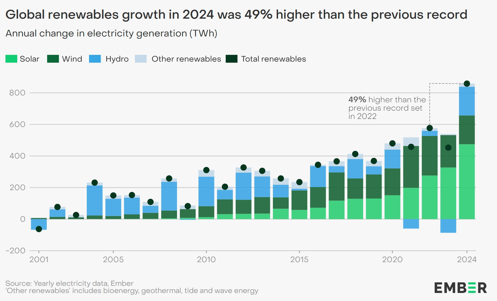 - Solar – +474 TWh (+29%)
